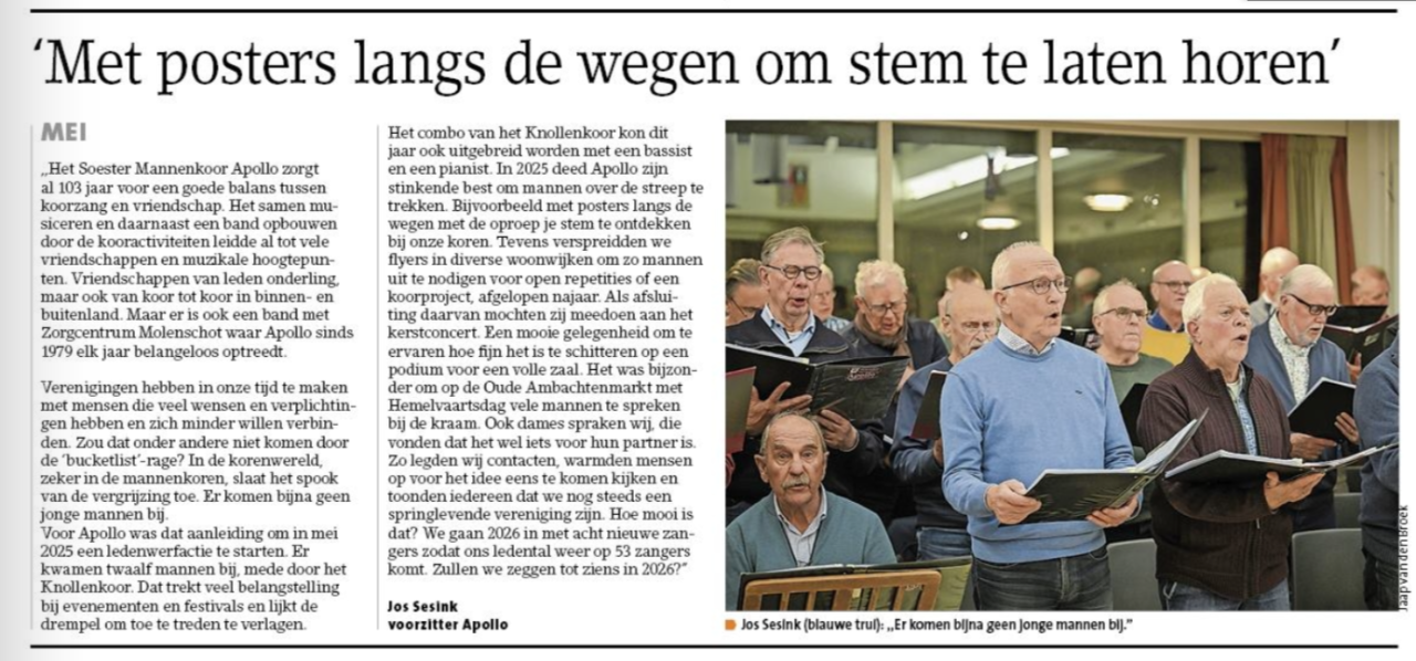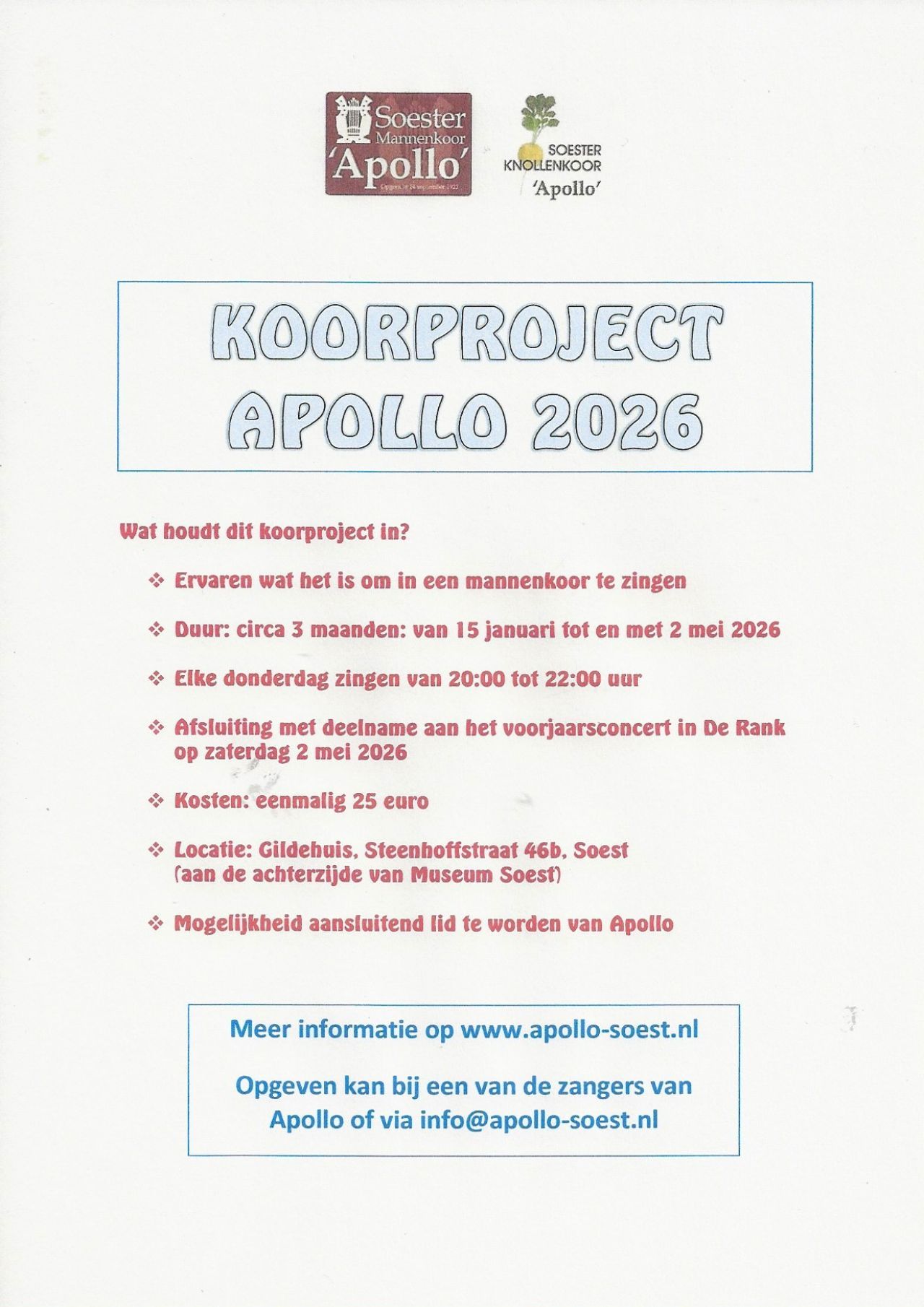 Voorjaarsproject 2026 Mannenkoor Apollo